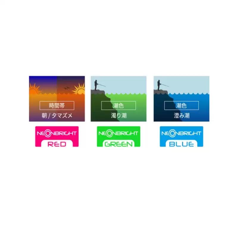 071: Colore che emette luce ultravioletta che è forte contro situazioni difficili come noci pecan, maree chiare e interruzioni di marea. Cattura il calamaro immotivato con un colore che si fonde con la marea limpida. La visibilità è buona anche per il colore giallo della parte della testa.